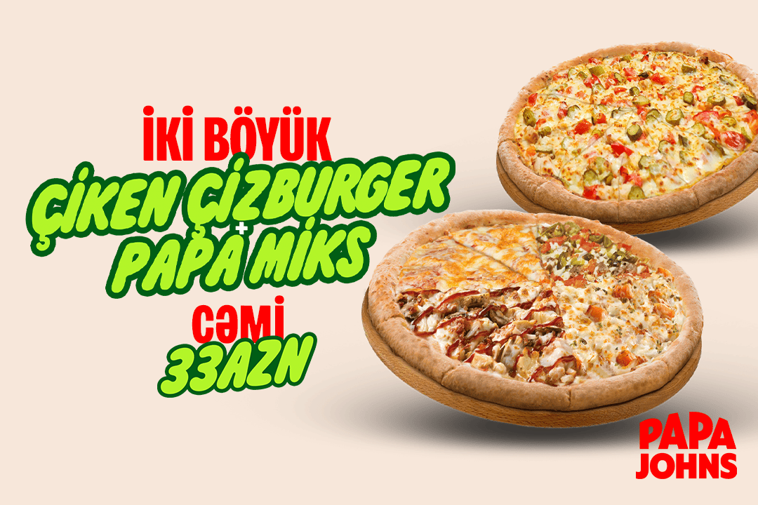 🍕 Böyük Papa Miks + 🍕 Böyük Çiken Çizburger - CƏMİ 33 AZN!